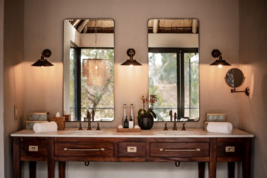 Each of the six luxury suites at Dulini Moya is decorated in a timeless blend of classic safari charm and indulgent comfort, offering a private haven of peace and serenity overlooking the Mabrak River. Floor-to-ceiling windows flood the suites with natural light and bushveld views, allowing you to enjoy this remarkable and picturesque Big Five wilderness, from the comfort of your suite. Each suite includes a spacious lounge and airy bedroom, with a luxurious bathroom offering a shower and freestanding bath to savor the moment in. Throughout the suite, sliding doors open onto a wide private deck with a heated plunge pool and outdoor shower where you can enjoy the night sky and wild sounds of nature’s amphitheater around you.