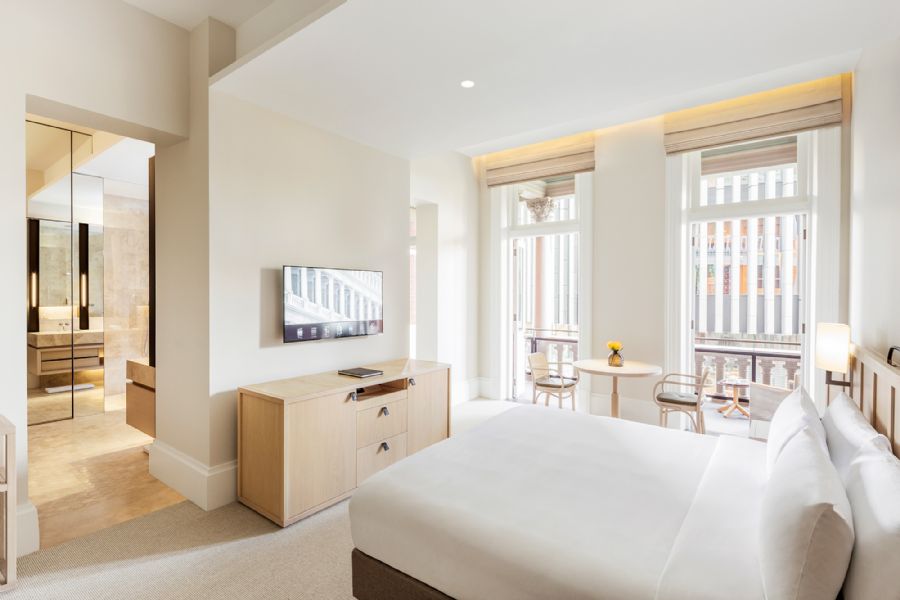 COMO The Treasury is an elegant urban hotel located within Cathedral Square, in the heart of Perth, Australia. Standing alongside the iconic St George’s Cathedral, the hotel is housed in the 19th-century State Buildings — buildings that have played an important role in Perth’s history, serving as a post office, land titles office and treasury. Meticulous restoration has revealed a grand Victorian-era façade, while inside an elegant and contemporary style permeates the 48 rooms and suites. Accommodation is large, with rooms ranging from 55sq m to 120sq m. Each room functions as a serene retreat from the cosmopolitan buzz, and is decorated in beige and white, with limed oak furniture, pale travertine, and bronze and leather trims. Dining options include the rooftop Wildflower restaurant overlooking the city and Swan River, serving a farm-and-forager-driven menu revolving around the indigenous six seasons, and Post, an all-day osteria serving Italian classics using the finest local produce. There’s also the Cape Arid Rooms, which provide an elegant spot for afternoon tea and events. Wellbeing is at the core of COMO Shambhala Urban Escape. Here, guests can enjoy a comprehensive range of holistic therapies as well as a pool and gym. Within the State Buildings you can also find Thai street food restaurant Long Chim, Petition Kitchen and Beer Corner, a florist, a chocolatier and other locally made, bespoke offerings.